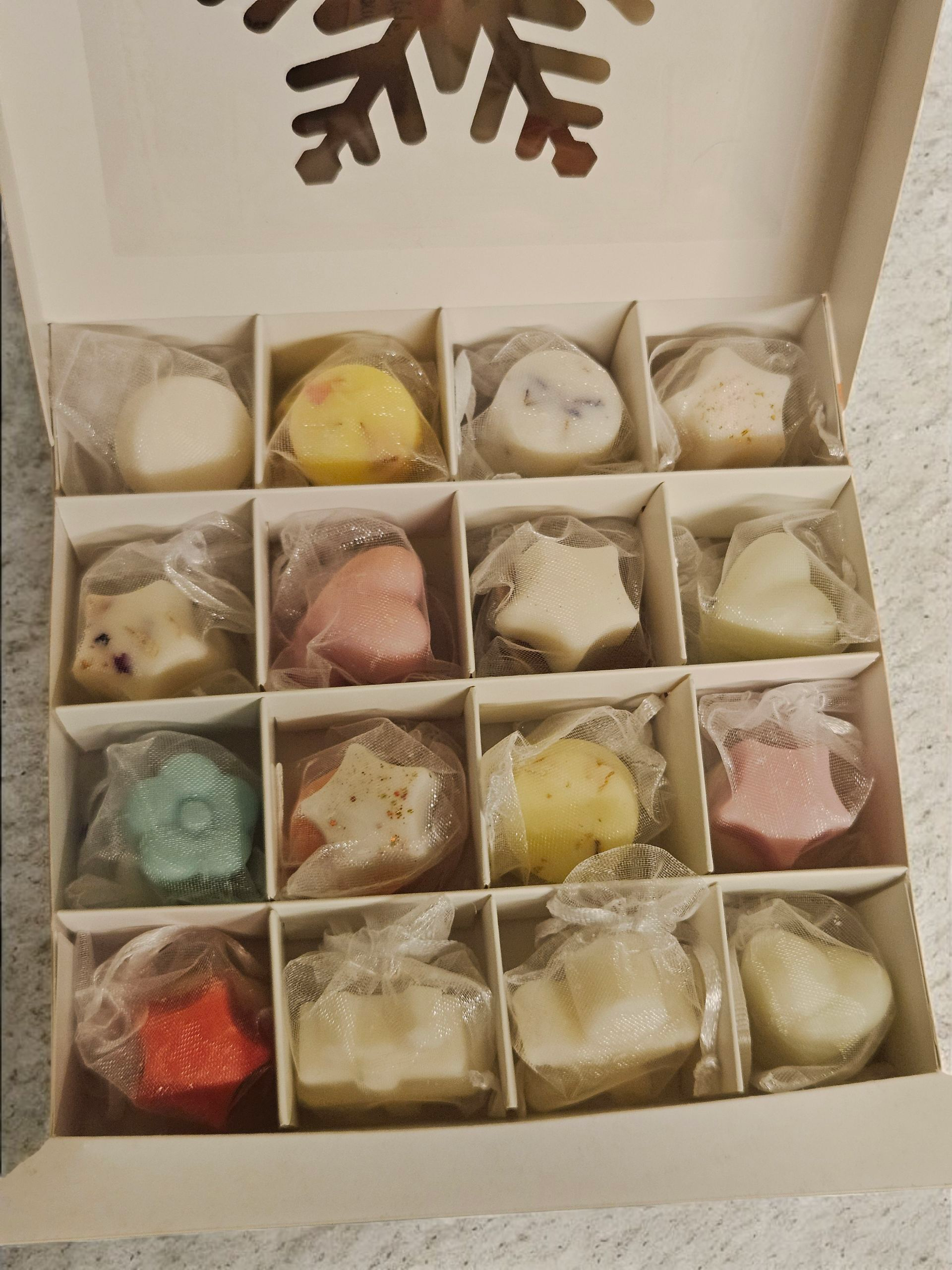 Due tartine per 16 fragranze, dentro una simpatica scatola che le fa sembrare dei colorati cioccolatini. (Spoiler: non sono commestibili! π)