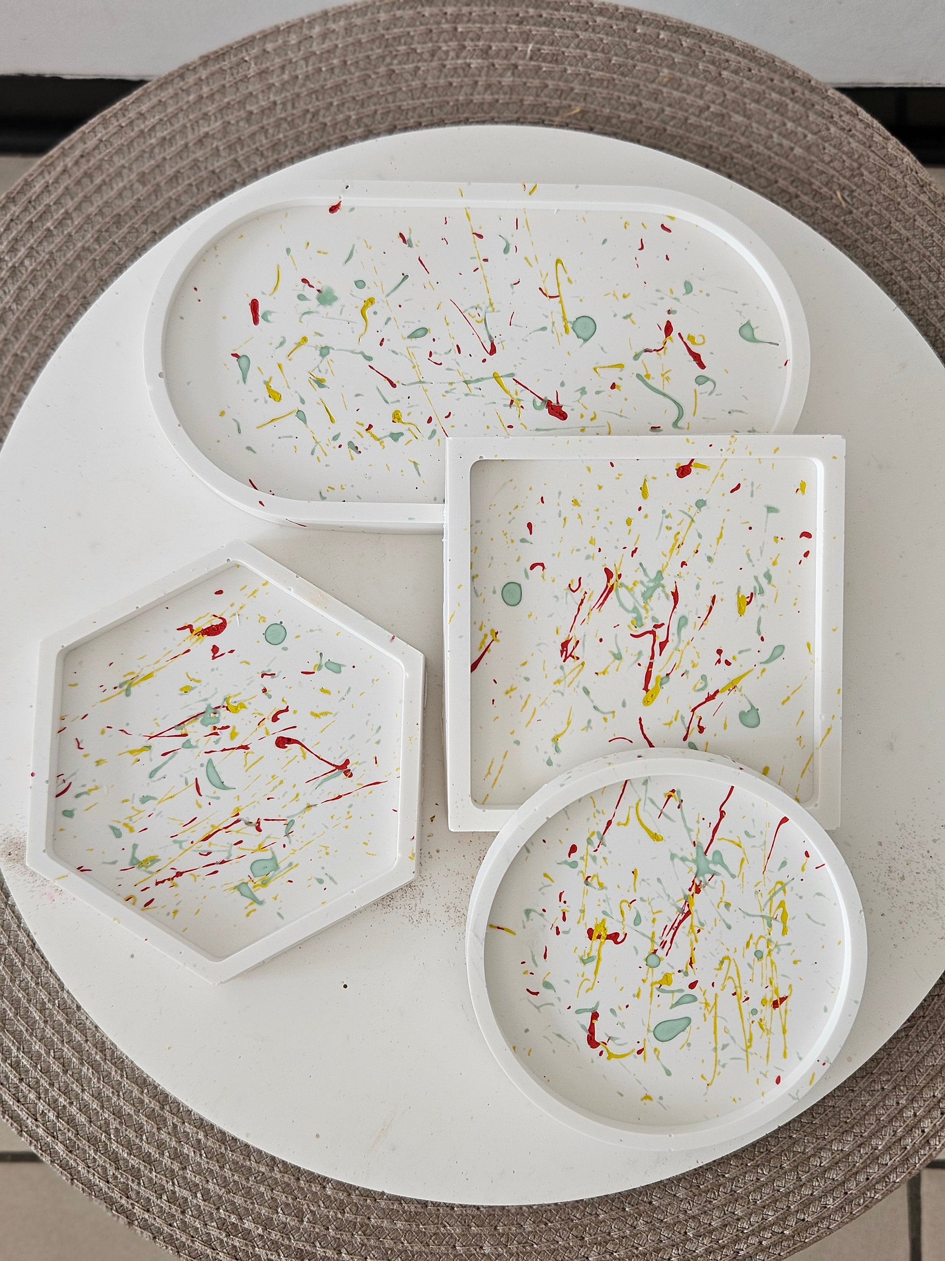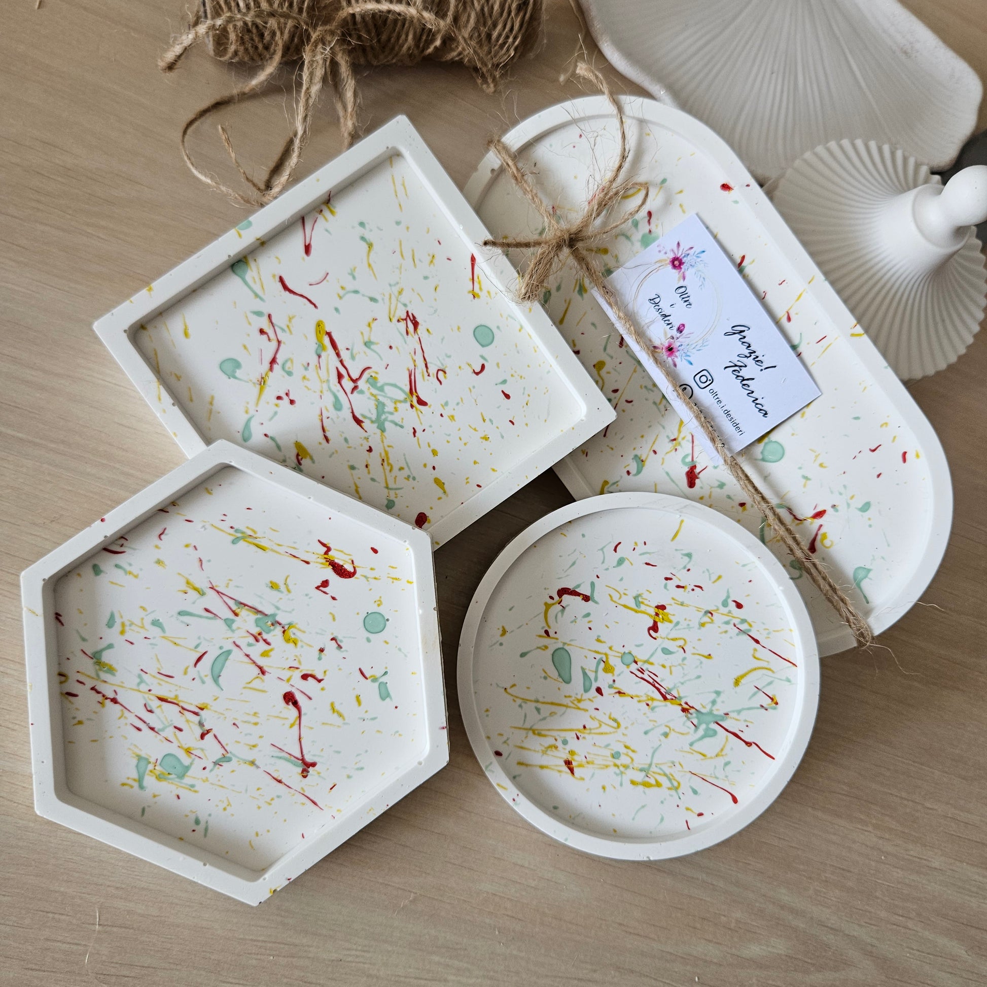 Vassoio in jesmonite realizzato nel laboratorio di Oltre i Desideri.