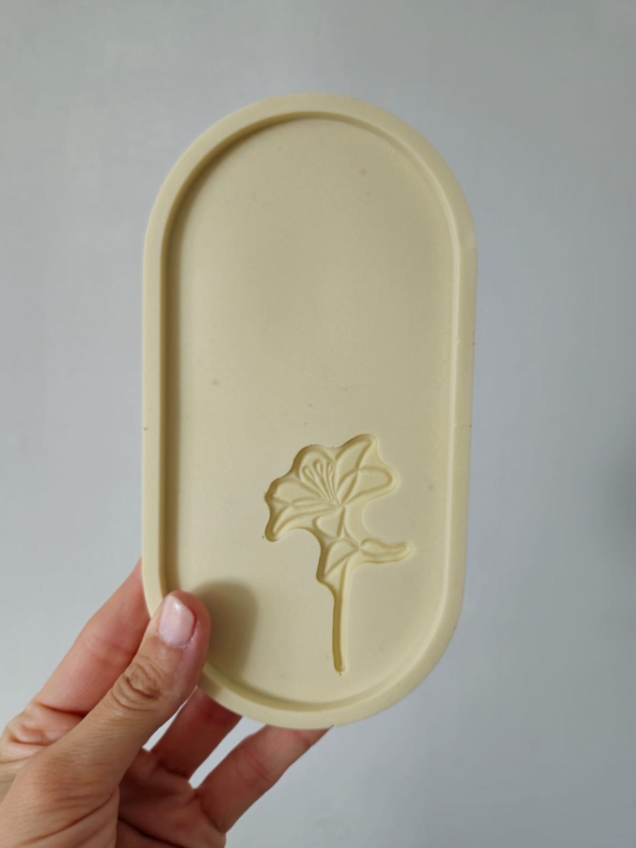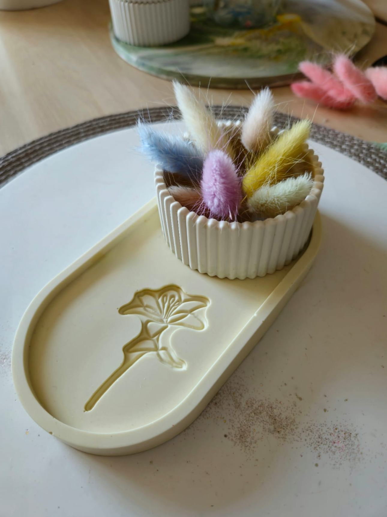 Vassoio in jesmonite realizzato nel laboratorio di Oltre i Desideri.