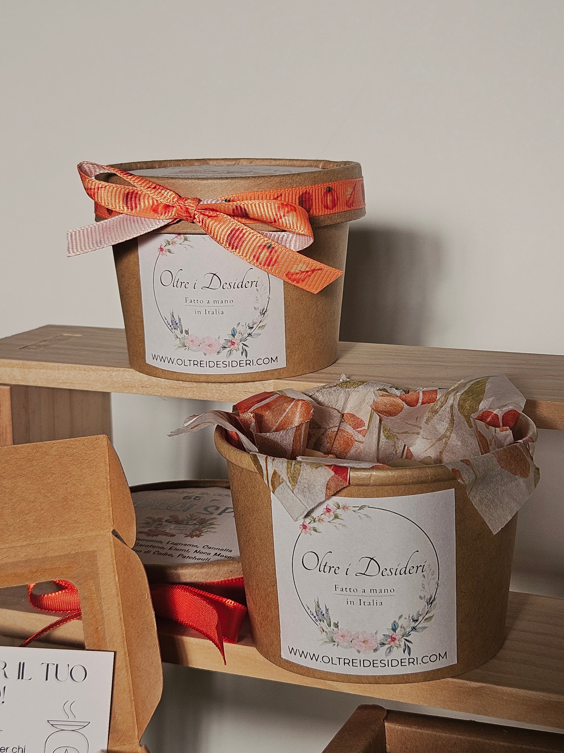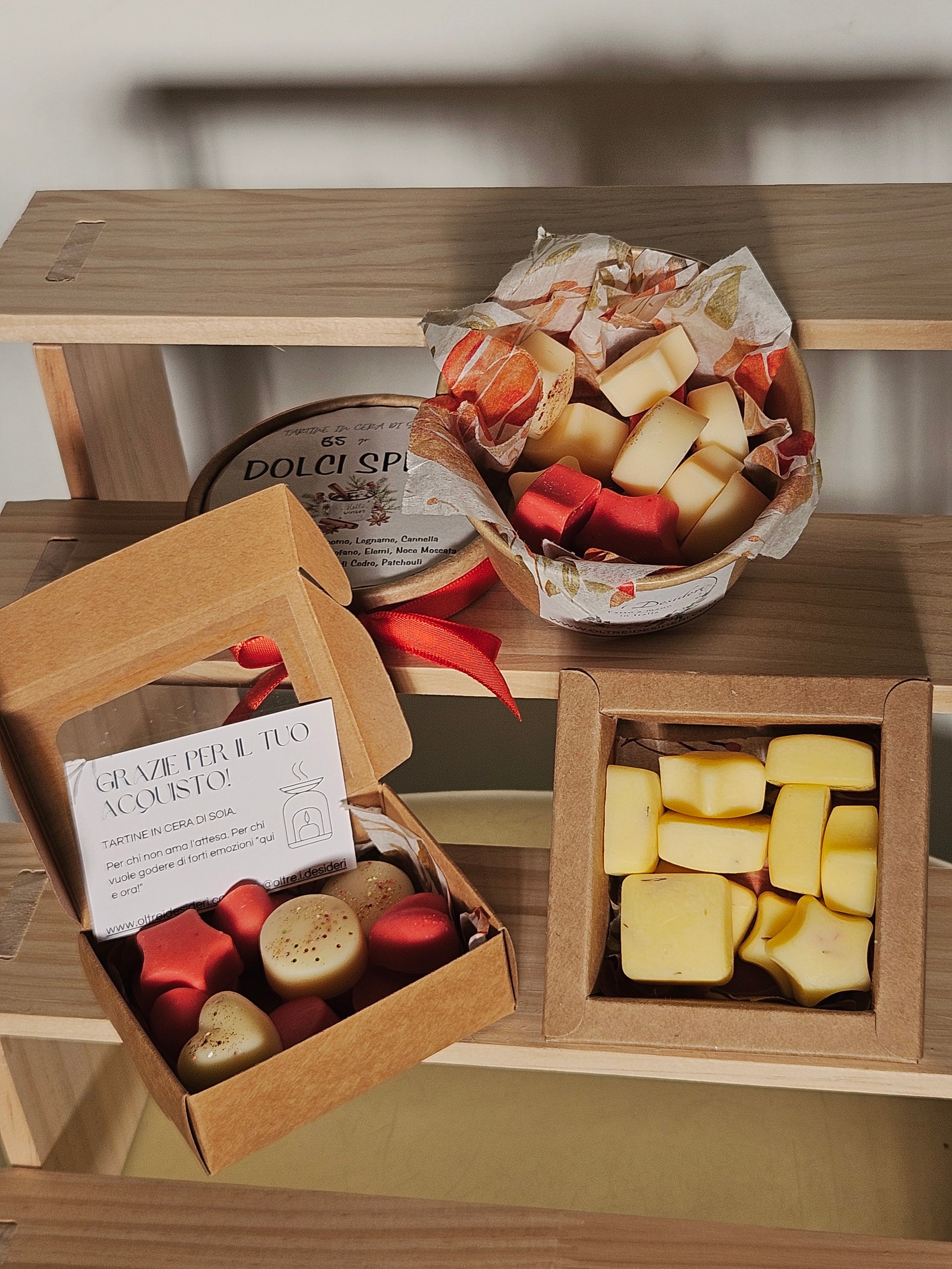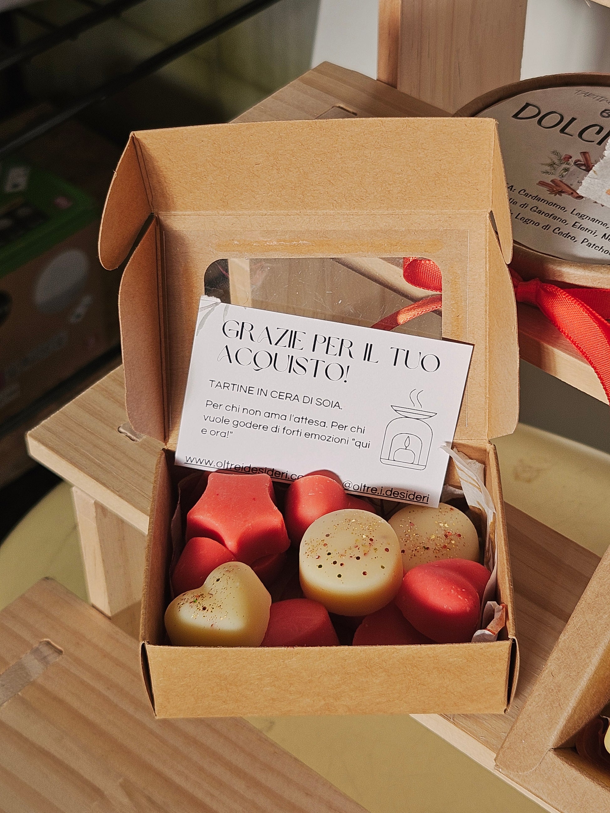 Tartine in cera di soia 100% vegana, profumata con fragranze sintetiche sicure e certificate per questo tipo di utilizzo. Controllate da laboratori che stabiliscono la loro sicurezza e composizione.