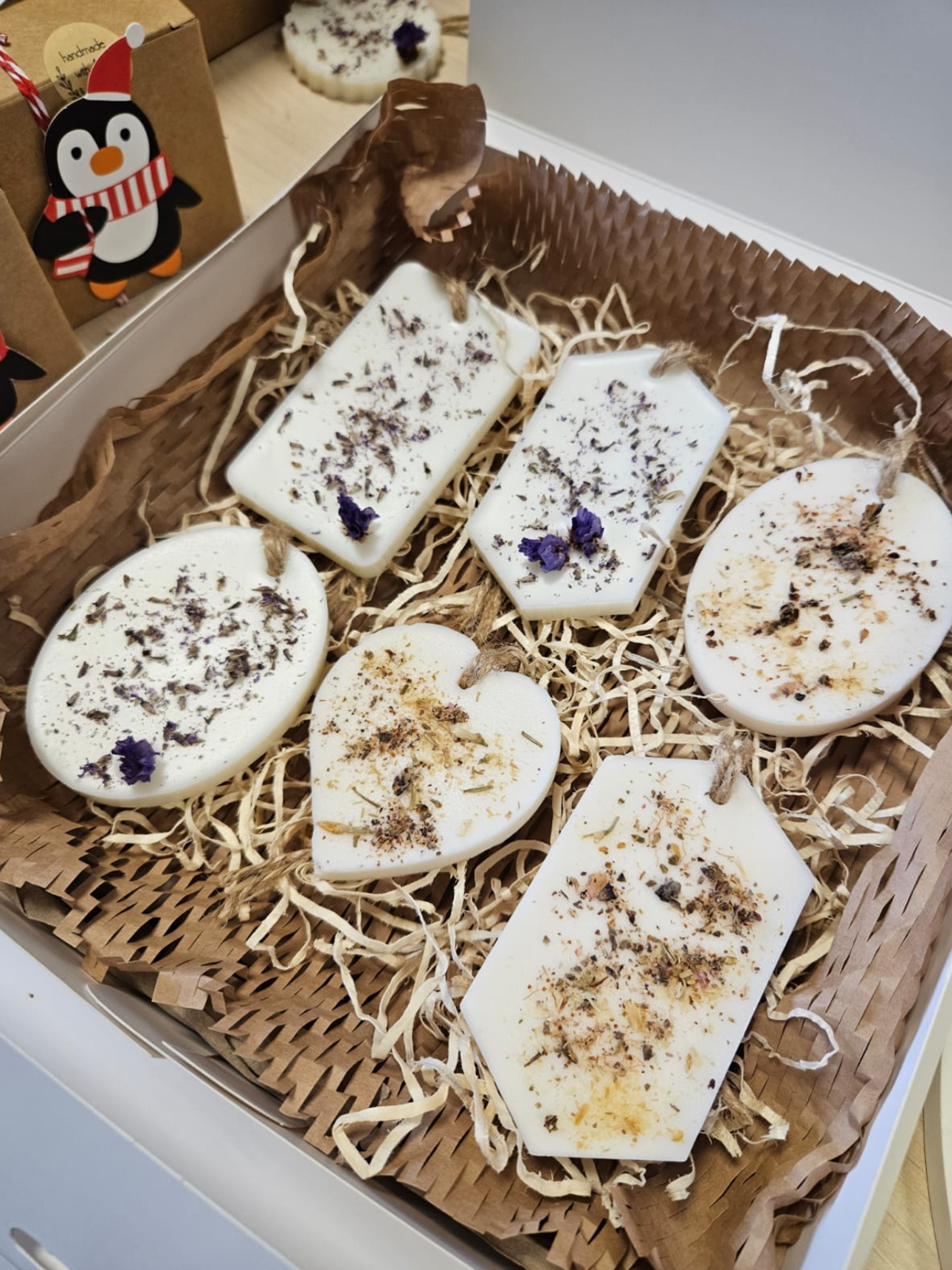Tavolette in cera di soia 100% vegana, profumata con fragranze sintetiche sicure e certificate per questo tipo di utilizzo. Controllate da laboratori che stabiliscono la loro sicurezza e composizione.